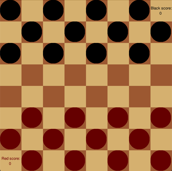 - Beginner state of the checker board, the three first rows in each opposite side are filled with each player in the dark squares.